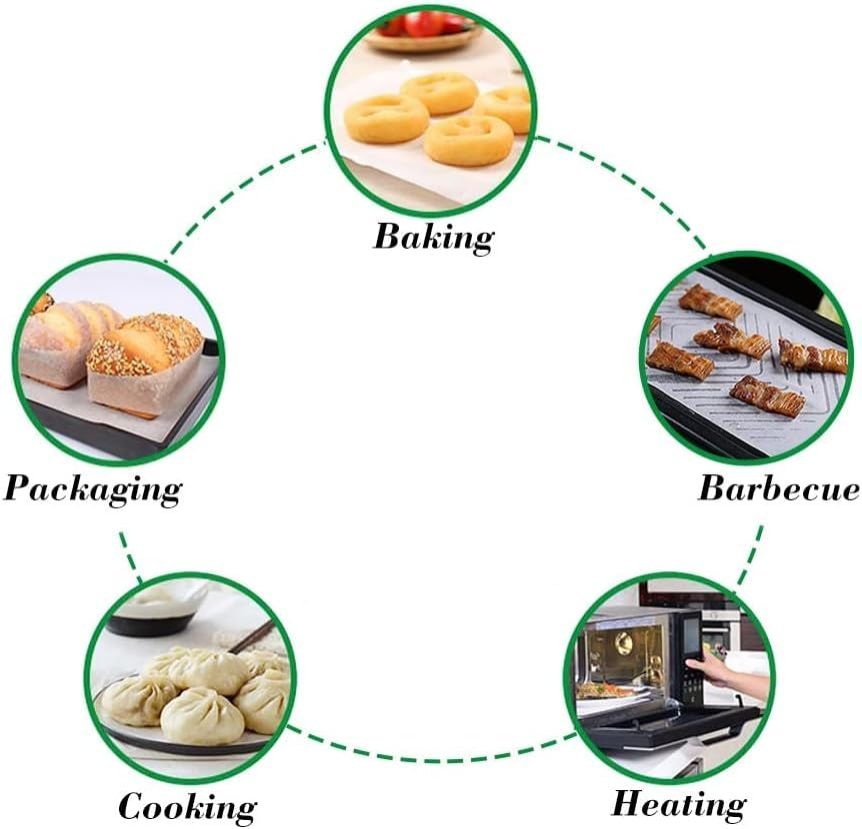 This parchment paper features uniform two-side coating that provides a non-stick surface along with moisture and oil resistance, ensuring that food items remain fresh, clean, and presentable. Its refined white appearance enhances product presentation while maintaining strict food safety standards, making it suitable for direct contact with edible products.