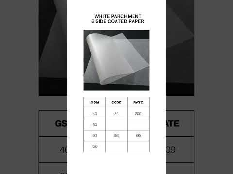 White Parchment Two Side Coated Paper 40 GSM is a high-quality specialty paper designed for superior performance in food wrapping and hygienic packaging applications. Manufactured using premium-grade pulp and advanced coating technology, this paper offers excellent grease resistance, smooth texture, and enhanced durability, making it ideal for both commercial and industrial use.
