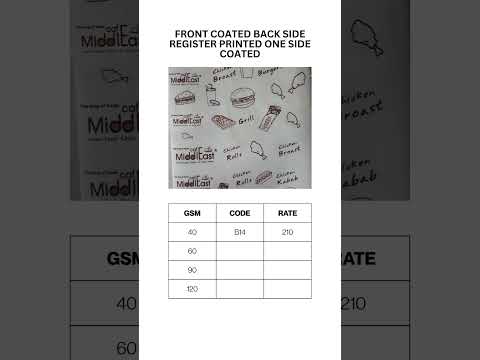 Our Front Coated Back Side Register Printed Butter Paper 40 GSM is a premium quality food-grade and multipurpose packaging paper specially developed for hygienic wrapping and brand-focused presentation. This paper features a smooth coated front surface for excellent grease resistance and a registered custom-printed back side, making it ideal for businesses that want both protection and strong brand visibility.