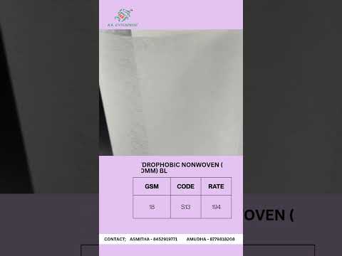 Hydrophobic Nonwoven Back Layer (180mm) is a specially treated nonwoven fabric designed to provide effective liquid resistance and enhanced protection in hygiene and medical applications. This material prevents fluid penetration while allowing breathability, ensuring superior comfort and dryness. It is widely used as a back layer in sanitary napkins, baby diapers, adult incontinence products and medical disposables. Manufactured using high-quality polypropylene fibers with advanced hydrophobic treatment, it offers excellent softness, durability, leakage control and uniform strength. Suitable for high-speed production lines and bulk export requirements.